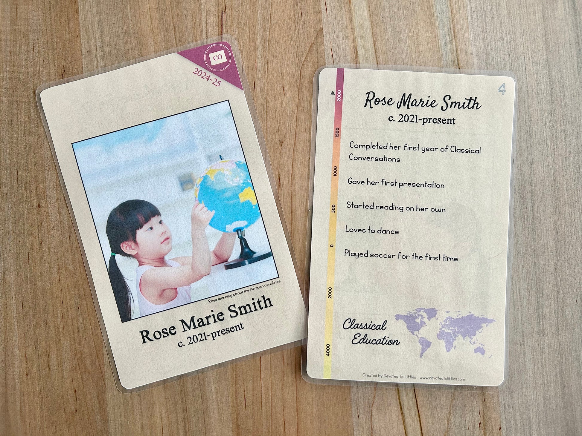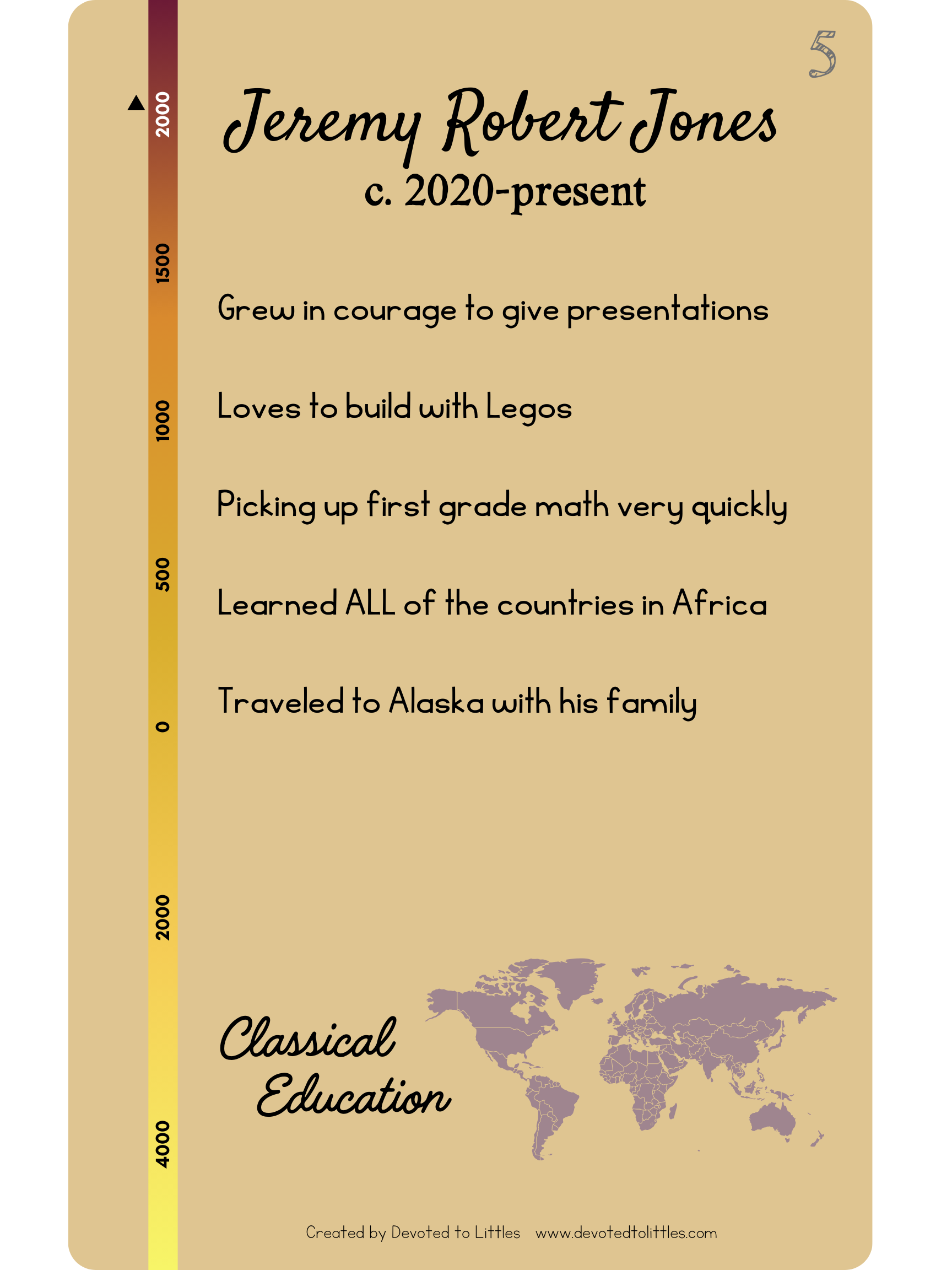Make your student's learning journey even more special with a customizable student timeline card that matches the style of the timeline cards used in Classical Conversations!